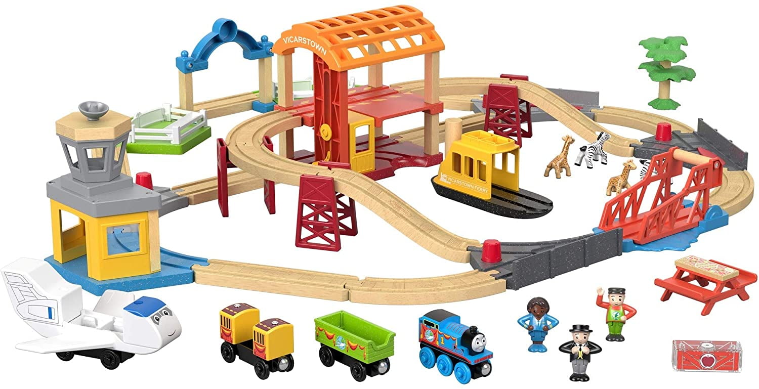 Thomas Friends Wood Busy Island Set Toy Train Set With 40 Pieces Including Track 5 Characters Poseable Figures And 3 Destinations Walmart Com Walmart Com
